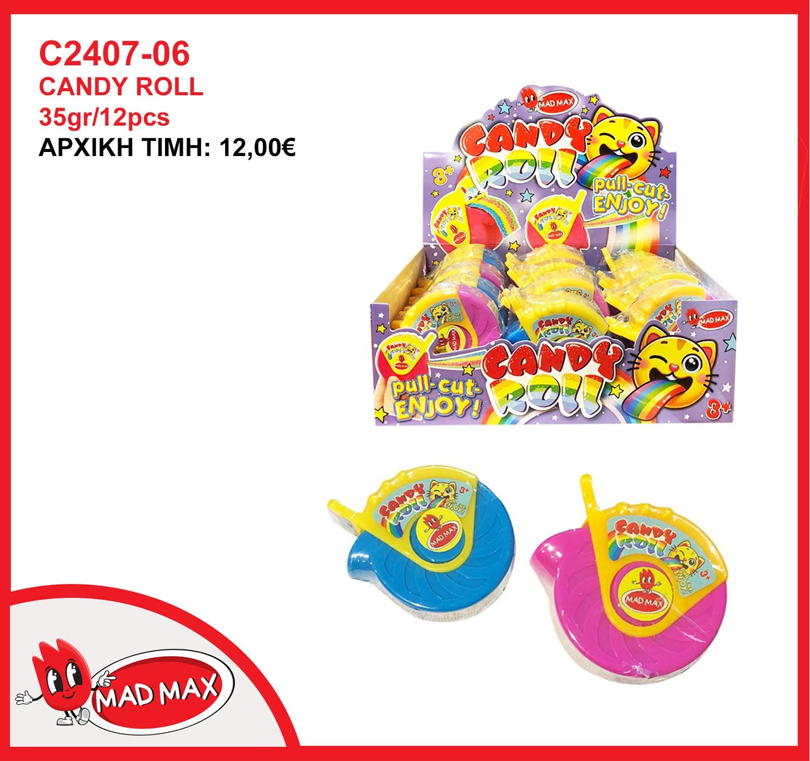 Αρχική σελίδα Τρόφιμα Καραμέλες - Τσίχλες - Ζαχαρώδη MAD MAX ROLL JELLY 35gr x 12TMX
