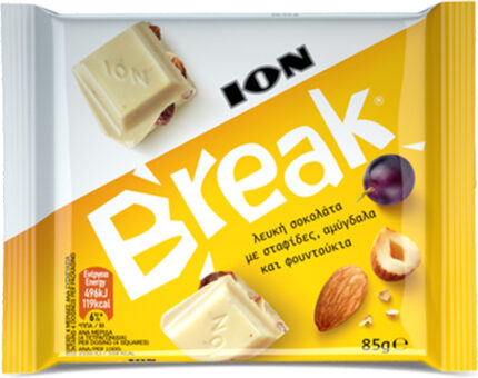 ION BREAK Λευκή Σοκολάτα Με Σταφίδες & Ξηρούς Καρπούς 85gr (WHITE)